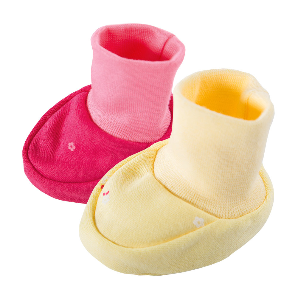 2-pak buciki niemowlęce wykonane z miękkiej bawełny mogą służyć również jako skarpetki.