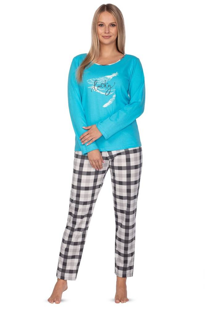 Bawełniana piżama z długim rękawkiem oraz ozdobnym nadrukiem. Do kompletu spodnie w kratkę