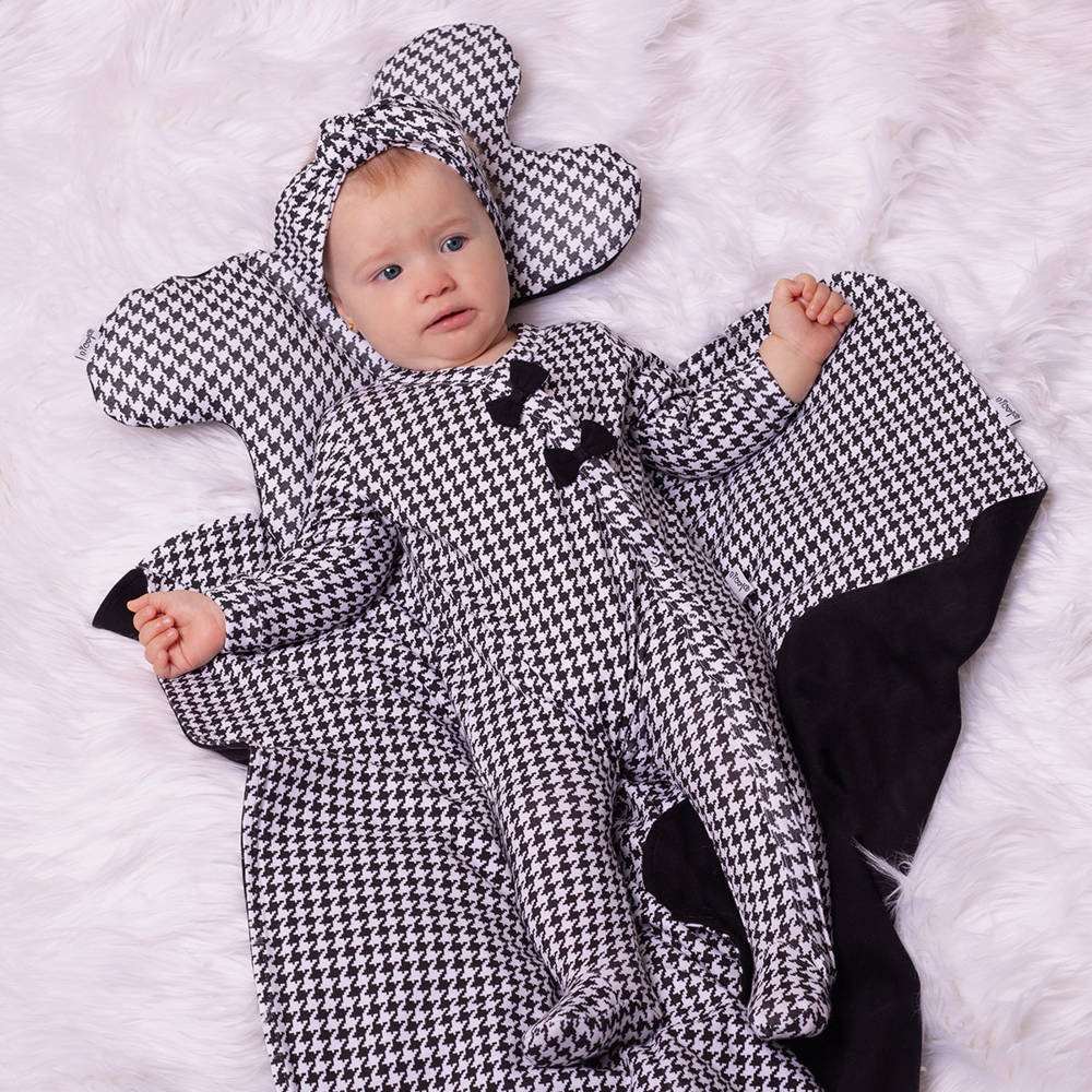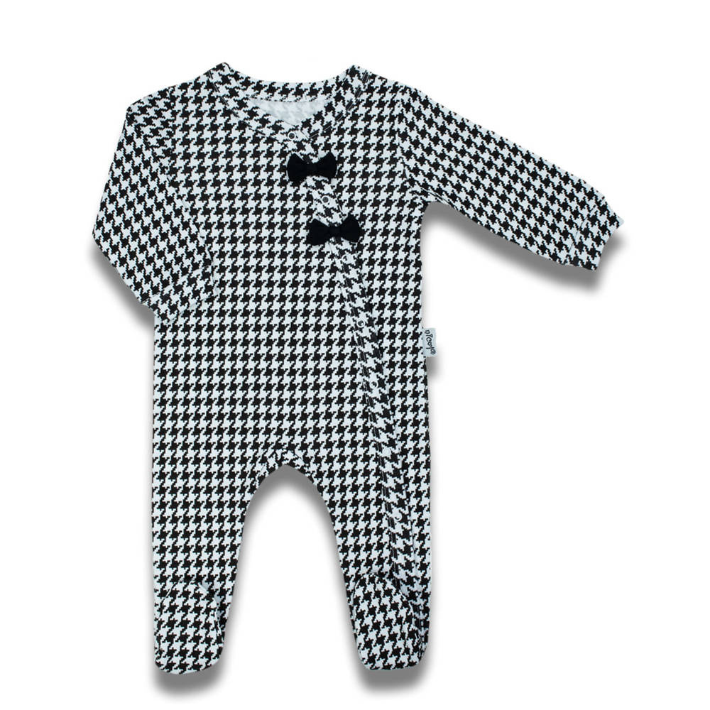 Bawełniany pajac niemowlęcy z nadrukiem. Pajac rozpinany jest na całej długości na bezniklowe zatrzaski. To bardzo ułatwia przebieranie lub przewijanie dziecka. Anatomiczny krój oraz wszyty w kroku klin sprawia, że ubranko nie krępuje ruchów maluszka podczas snu.
