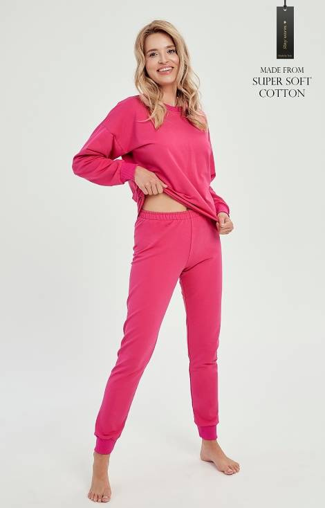 Luźny komplet damski, sportowy. Składa się z klasycznej bluzy oraz długich spodni .Komplet uszyty z bawełny.