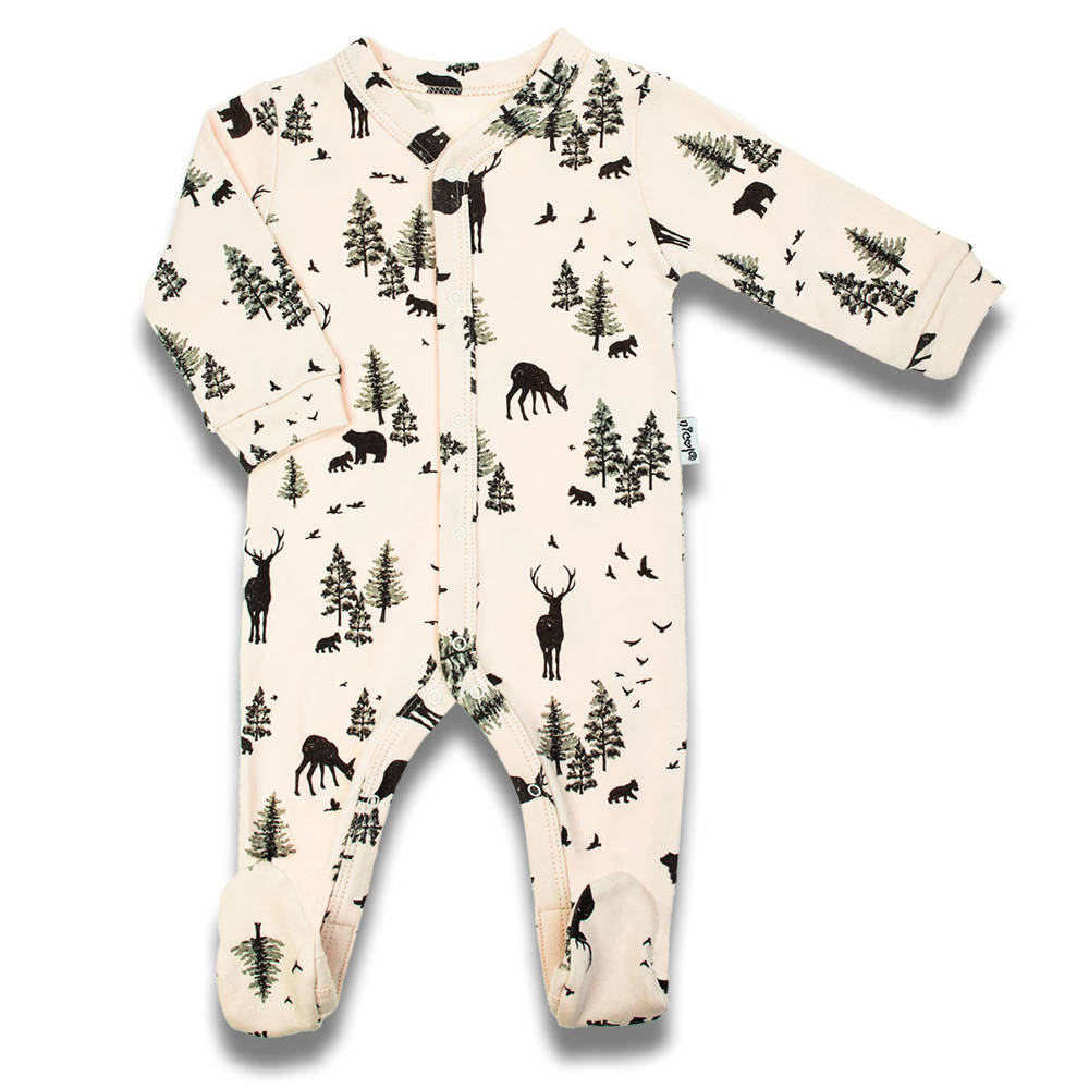 Bawełniany pajac niemowlęcy z nadrukiem. Pajac rozpinany jest na całej długości na bezniklowe zatrzaski. To bardzo ułatwia przebieranie lub przewijanie dziecka. Anatomiczny krój oraz wszyty w kroku klin sprawia, że ubranko nie krępuje ruchów maluszka podczas snu.