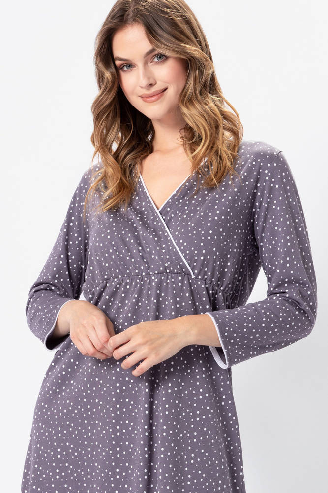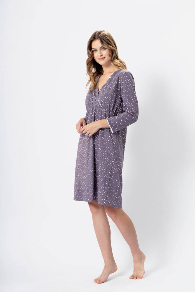 Koszula damska z rękawem 7/8 uszyta z wysokiej jakości bawełny. Długość koszuli do kolan, dekolt w serek.