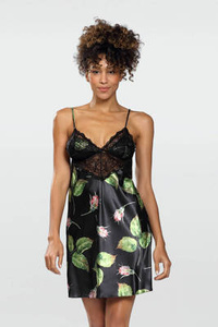 Długa halka satynowa Flowers DKaren - DK-HI 8 czarny