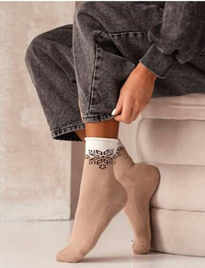 0071-007 Śnieżynka Unique Skarpety damskie Świąteczne Milena -beżowy
