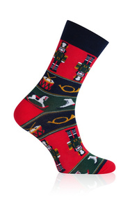 1290-014 Buldogi w czapce Mikołaja Świąteczne Skarpety Męskie Milena - czerwony