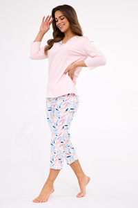 Piżama damska Donna Caroline 3/4 – bawełna, kwiatowy wzór, spodnie do łydki