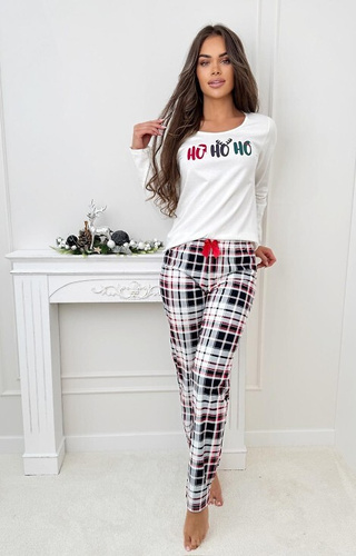 Damska piżama Elisa 3434 Taro – bawełna, długi rękaw, spodnie w kratkę