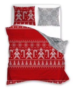 Scandic 065 Scandic Faro czerwona szara pierniki śnieżynki – pościel świąteczna dwustronna, bawełna 100%, komplet