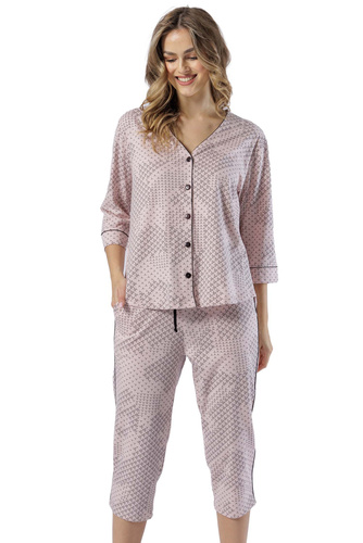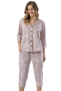 Piżama Damska krótki rękaw, 3/4 spodnie Ermida Italian Fashion - druk/cappuccino