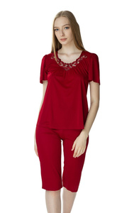 Mewa Piżama damska Matylda burgund– jedwab wiskozowy, długość 3/4, produkt polski