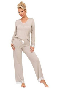 Piżama Moraj PDD3800-013 – beżowa, wiskozowa z panterkowym wzorem i koronką