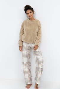 Sensis Joyce – ciepła piżama damska z miękką bluzą i spodniami w kratkę