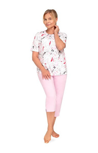 Martel Maria I 200 – piżama damska bawełniana rozpinana, 3/4 spodnie- 31 różowa