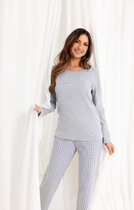 Regina 714 szara – piżama damska bawełniana z długim rękawem i spodniami w kratkę