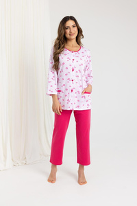 Damska piżama Regina 723 różowy– bawełniana, rękaw 7/8, klasyczny fason i wygoda