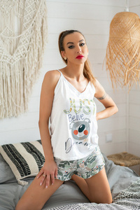 Koszula nocna, wąskie ramiączko Bambus Italian Fashion - druk