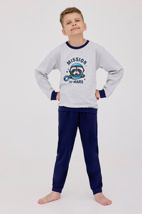 Piżama chłopięca 268/166 Mission Cornette szary jasny melanż-granatowy