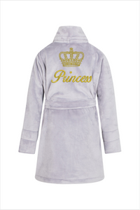 Szlafrok dziecięcy polarowy Princess + korona ByShelly - szary/złoty