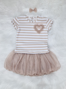 Bluzka krótki rękaw Gracja Bambarillo beżowy paski serce