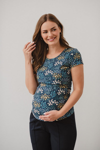 Bluzka do karmienia i ciążowa z krótkim rękawem Milk Shirt Milk&Love łąka na granatowym