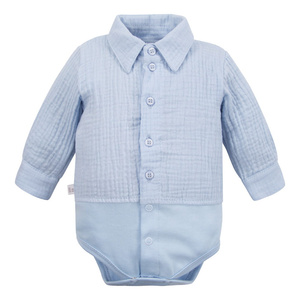 Body niemowlęce muślinowe Ceremony Eevi z kołnierzykiem –błękitne | Premium cotton