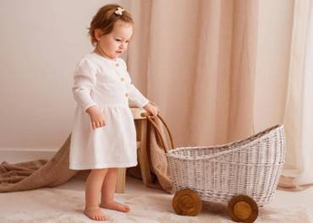 Letnia sukienka dziewczęca z muślinu Pinokio Crabs ecru 100% bawełna